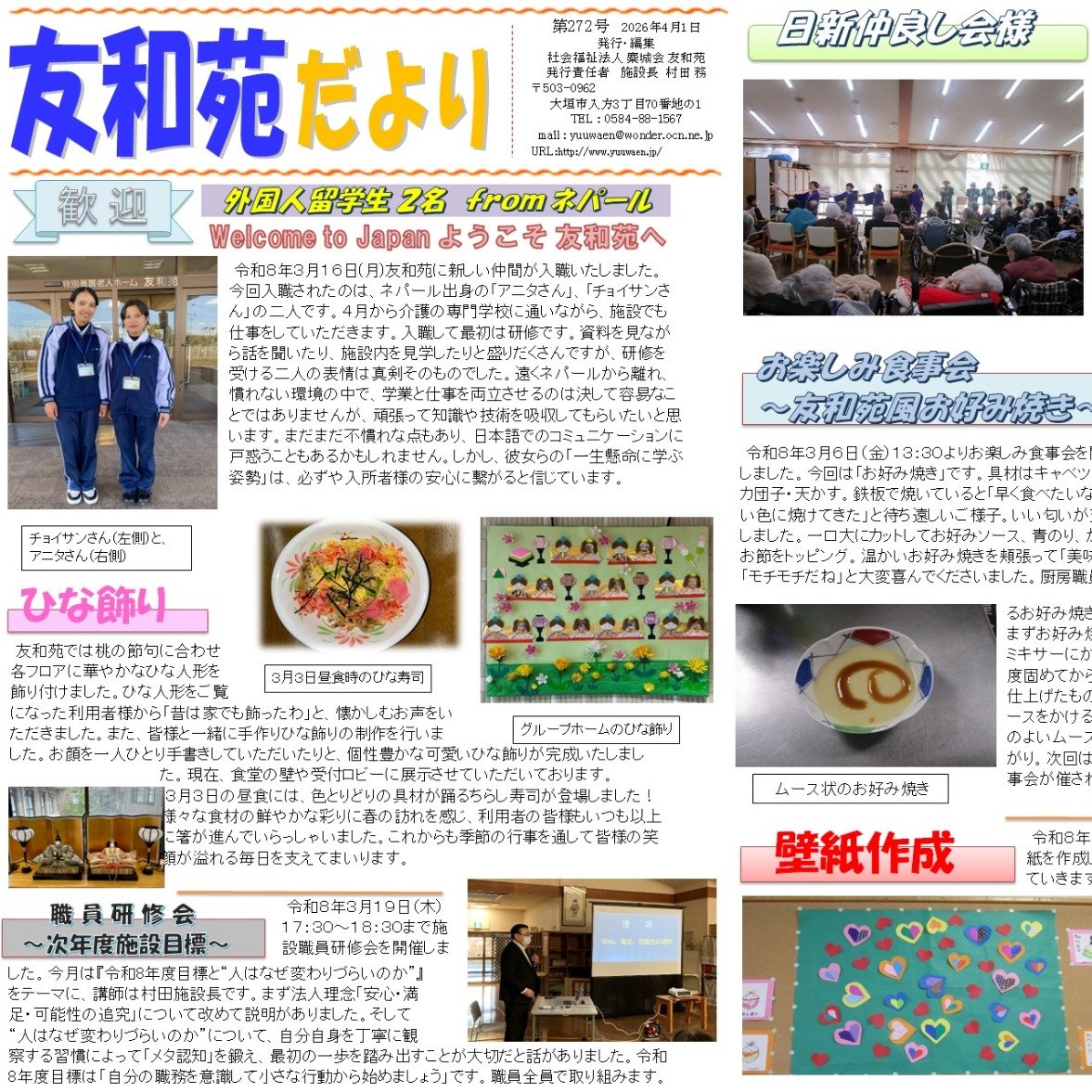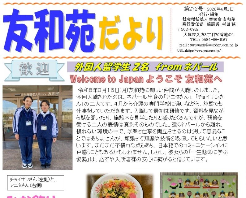 友和苑だより4月号を発行しました。是非、ご覧下さい。