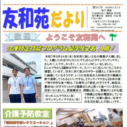 友和苑だより11月号を発行しました。 是非、ご覧下さい。
