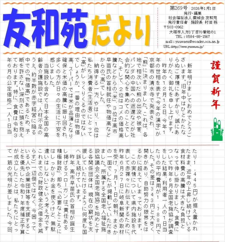 友和苑だより1月号を発行しました。 是非、ご覧下さい。